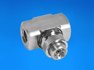 This dry fog nozzle operates with an external mix, which means the atomization of the fluid takes place outside the nozzle. As there is an external mix, (as opposed to an internal mix), the flow rate is not dependent on the air pressure, which results in easier control. It is available for 1/4" and 1/2" pipe sizes and can be specified in a choice of standard materials including nickel-plated brass, 304 or 316 stainless steel. The nozzle can also be constructed from other materials to accommodate demanding conditions.